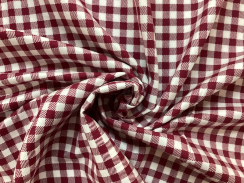 100 % Cotton Gingham Shirting in Cherry Red & White