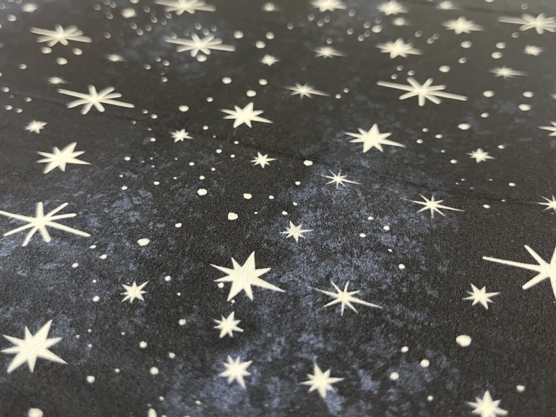 100% Silk Charmeuse Celestial Pattern In Navy & White