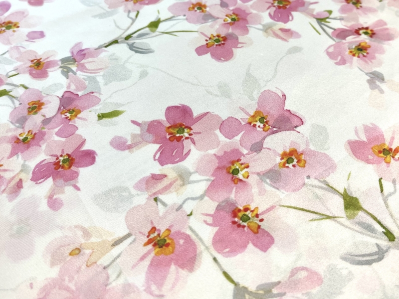 100% Silk Charmeuse Floral Print Fabric in Warehouse