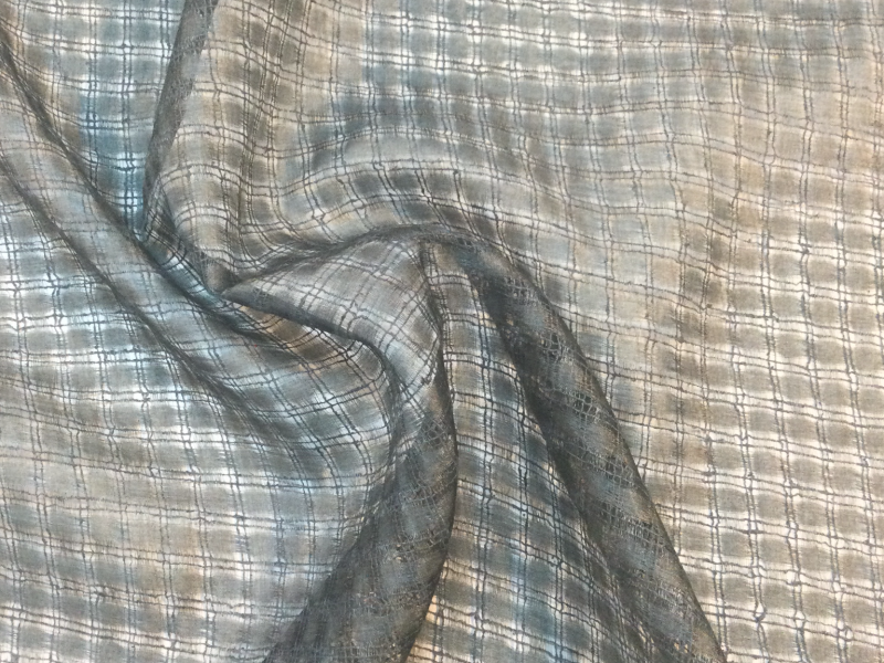 100% Silk Novelty Checkerboard Pattern In Blue Steel