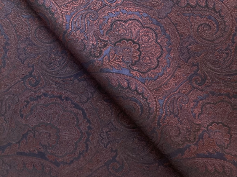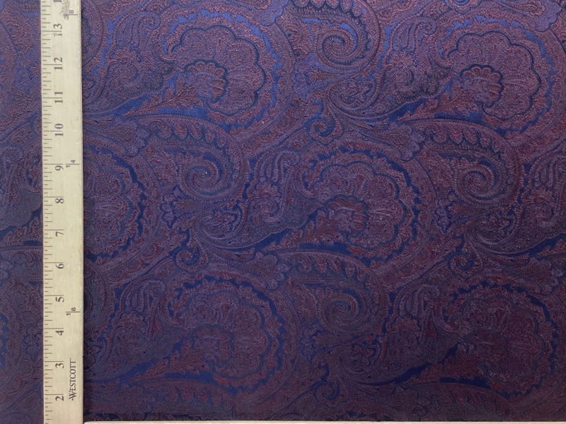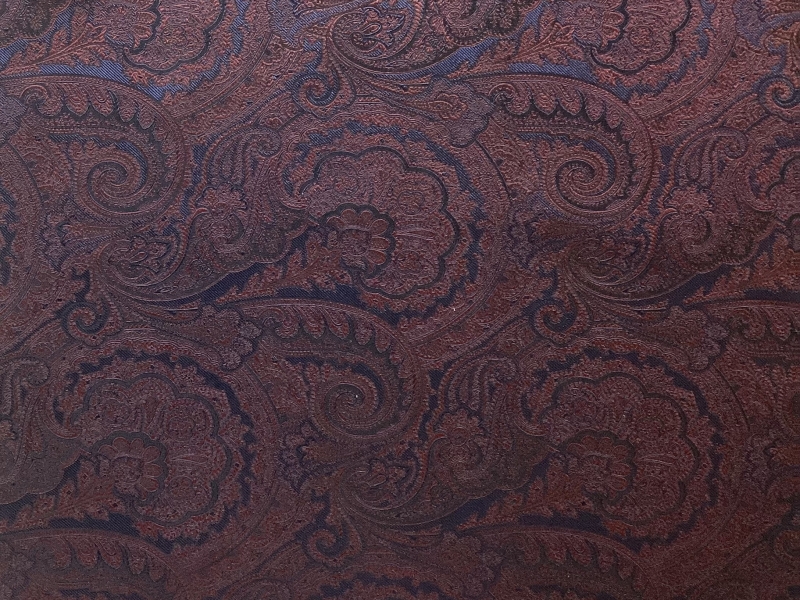 100% Tie Silk Paisley Jacquard In Burgundy On Navy