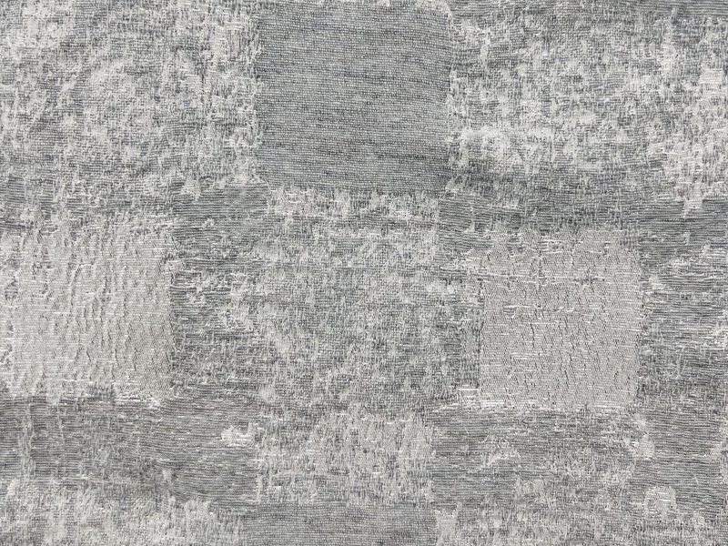 Abstract Check Brocade in White/silver Metallic