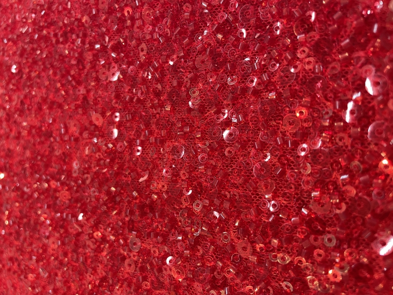 BEADED/SEQUINED<BR>TULLE<BR>IN RED