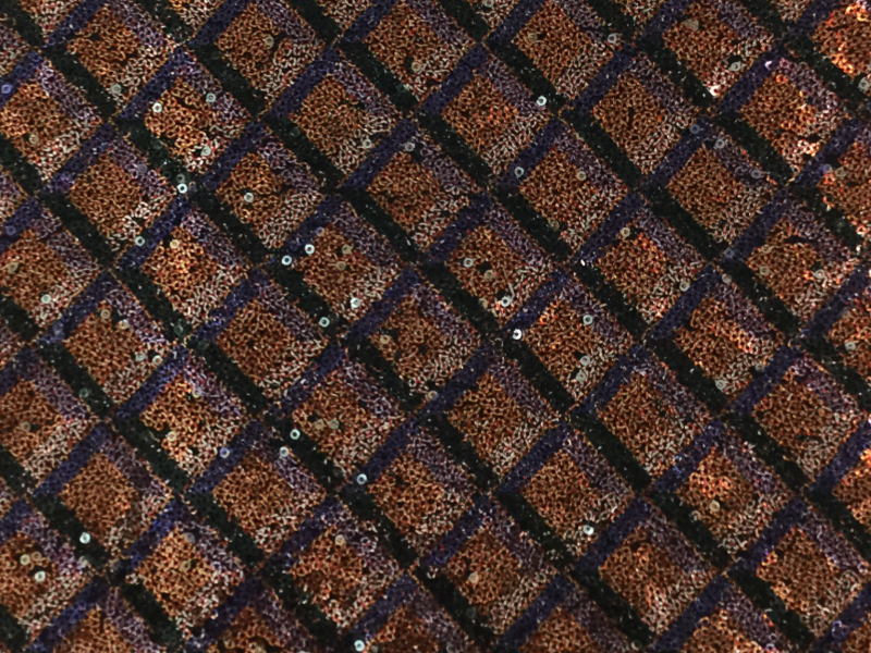 Sample Bias Plaid Sequin on Tulle in Orange, Purple and Black