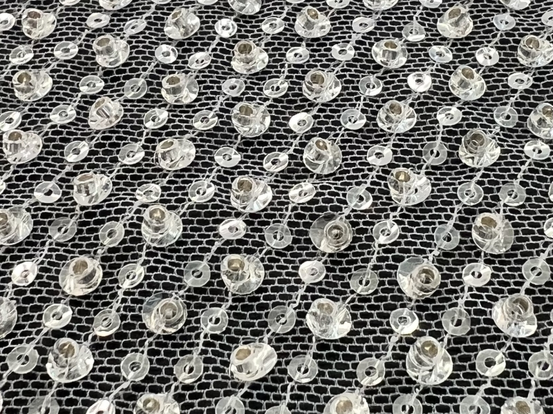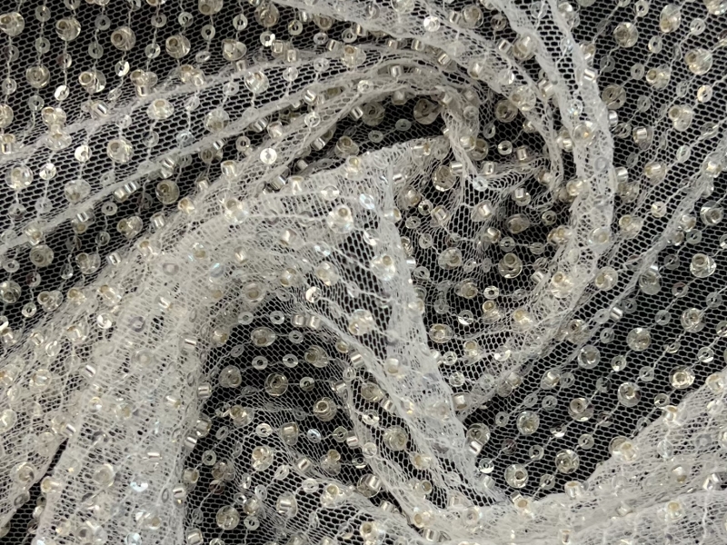 Clear Sequin/Crystal Twill on Tulle White