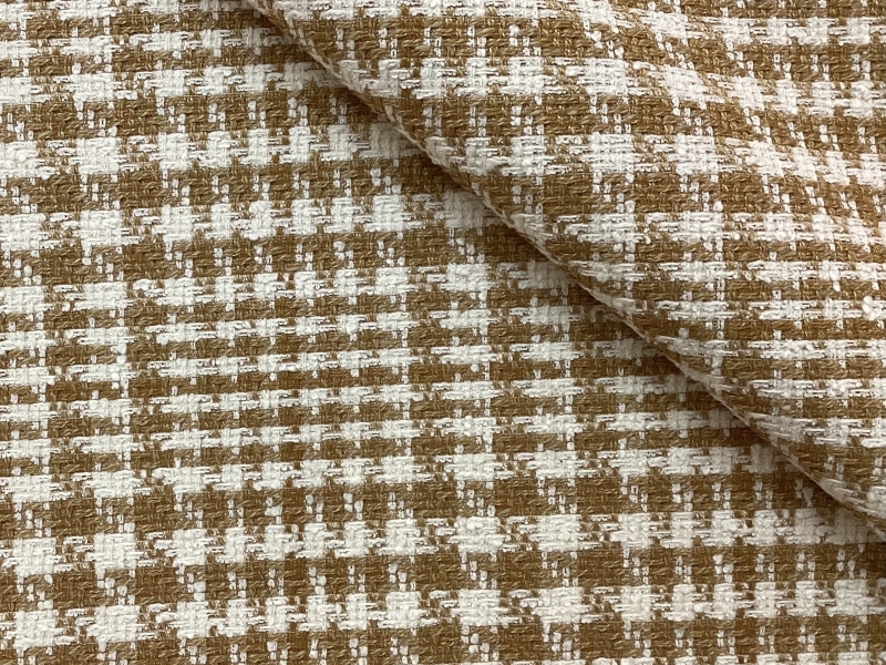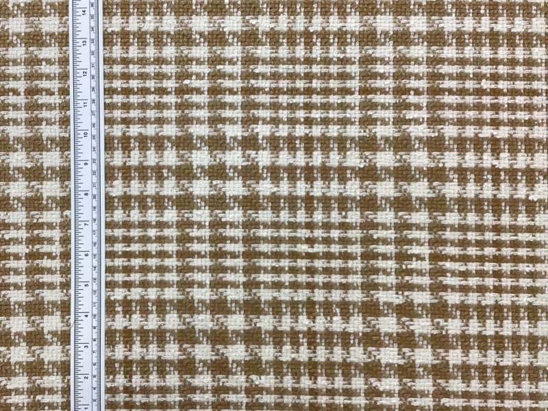 Cotton Blend Glen Plaid Tweed In Caramel & Vanilla