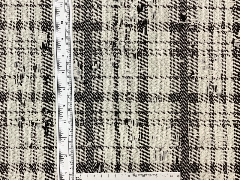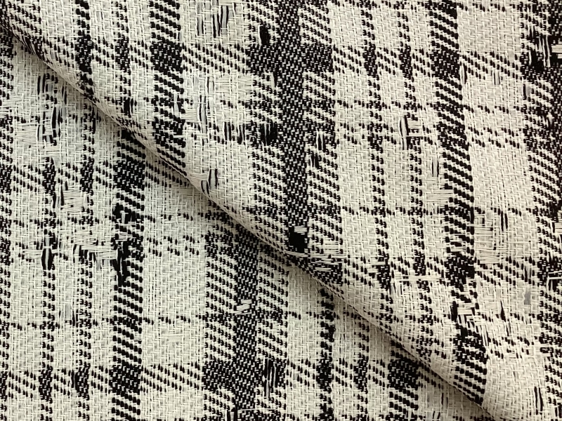 Cotton Blend Plaid Tweed In Cream & Black
