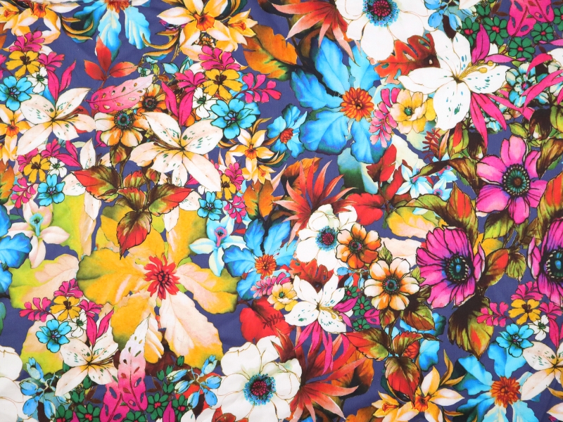Cotton Satin Lawn with Multi Colored Florals