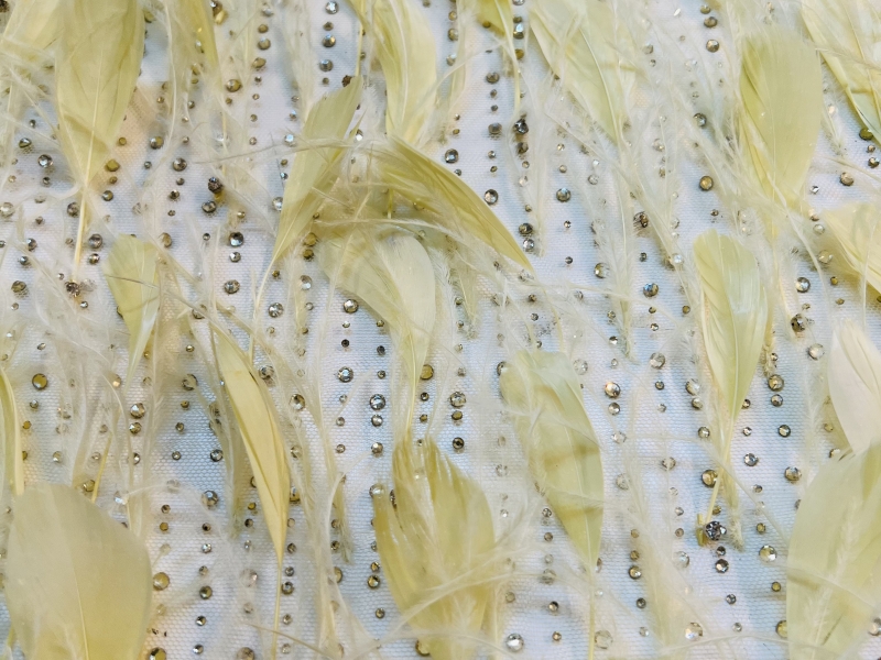 Couture Crystal with Striped Coque and Ostrich Feather in Yellow