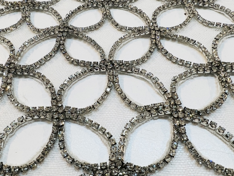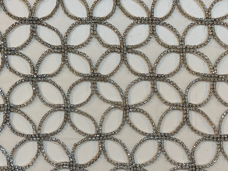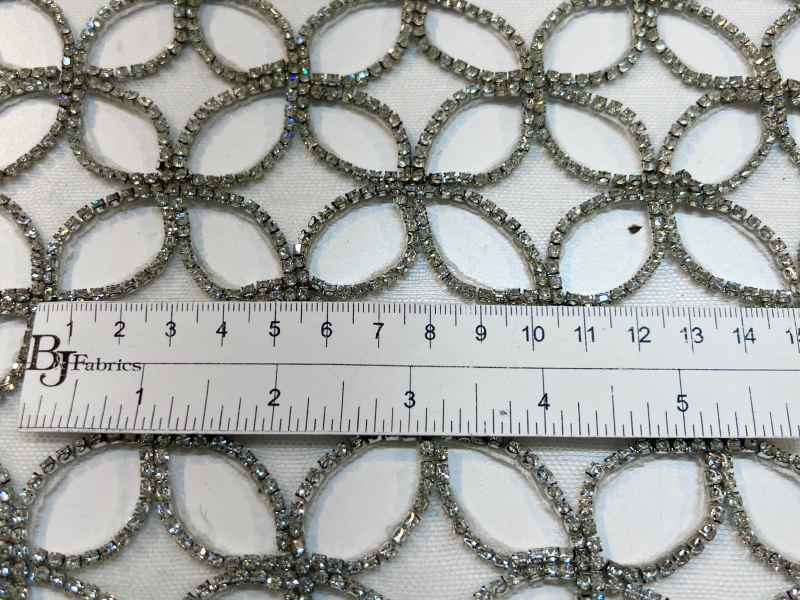 Couture Hand Sewn Crystal on Tulle Cut Out in Silver