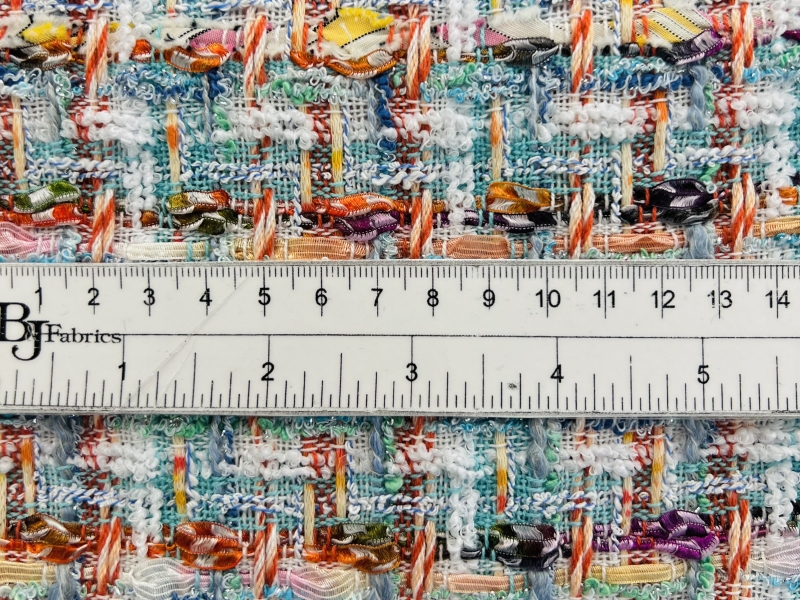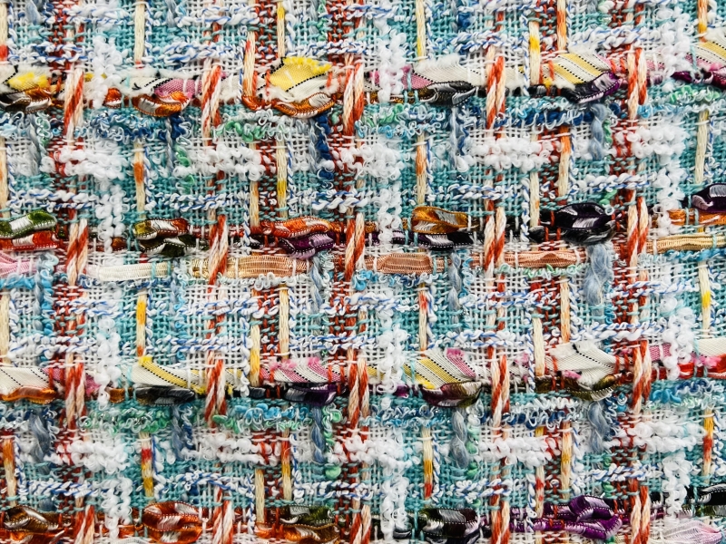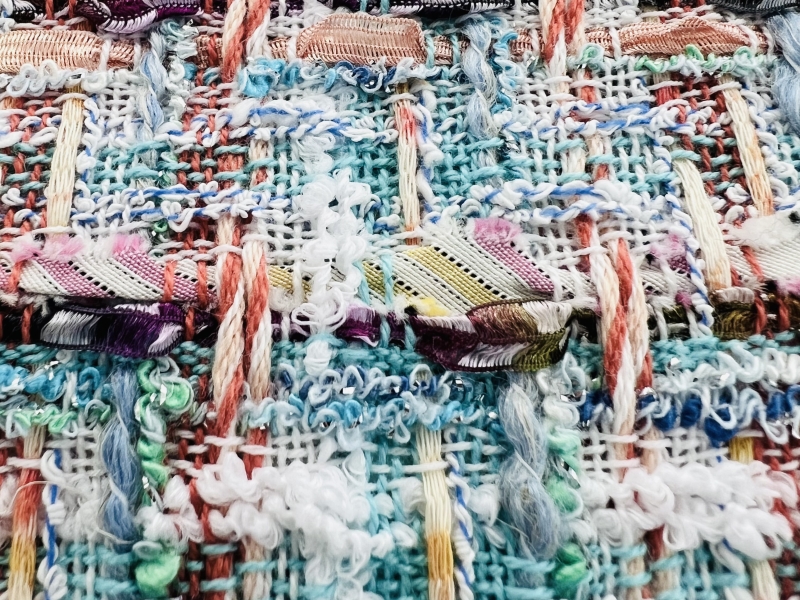 This Couture Tweed is loosely woven and light-weight, with a mix of both natural and synthetic fibers that give it it's appealing texture. Turn this fabric into an iconic Chanel-type jacket, a suit, a simple dress, or even a skirt.