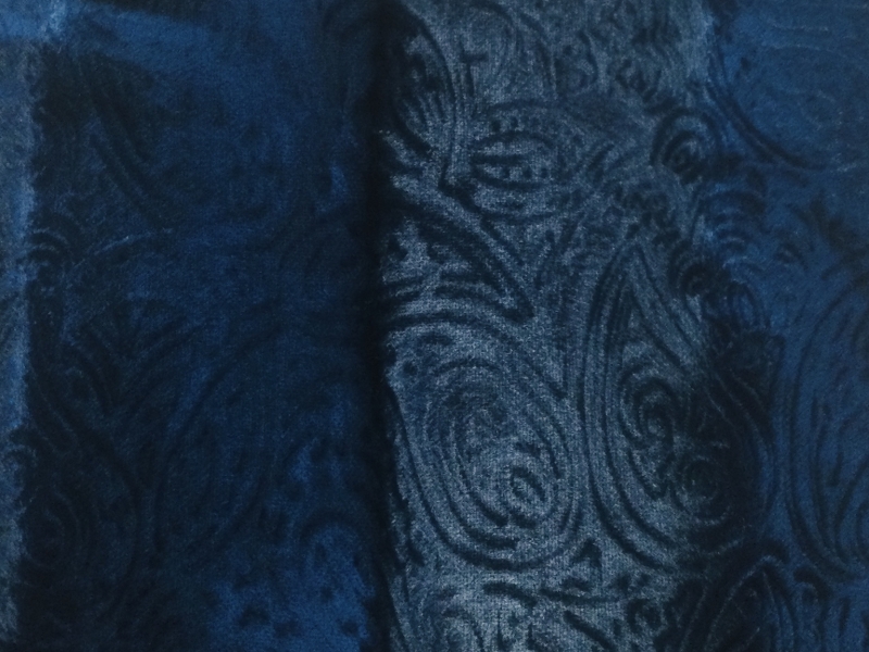 EMBOSSED<BR>RAYON VELVET<BR>in LAPIS <br><br>FABRIC IN WAREHOUSE