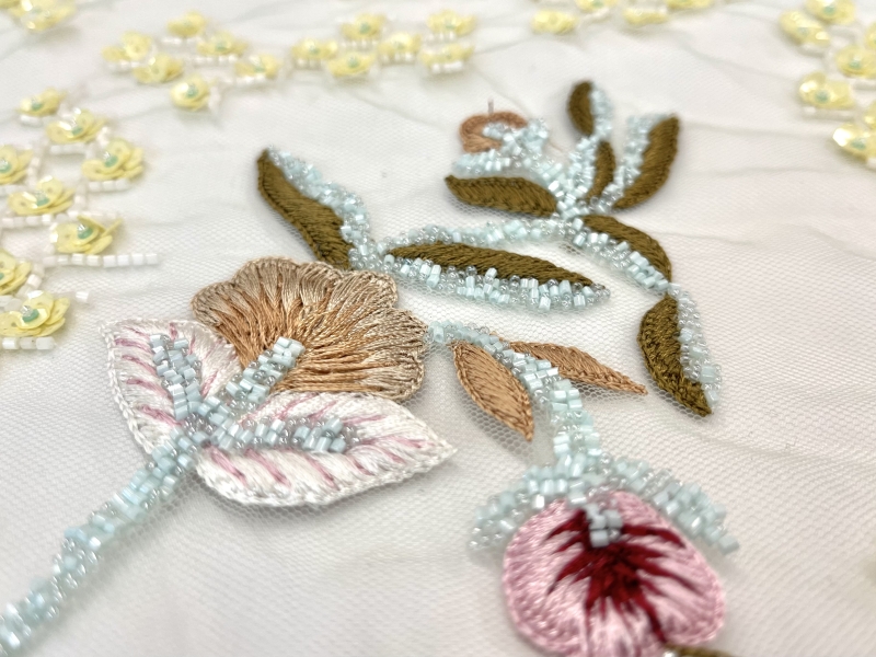 Embroidered Illusion with Sequins and Seed Beads Embellishments