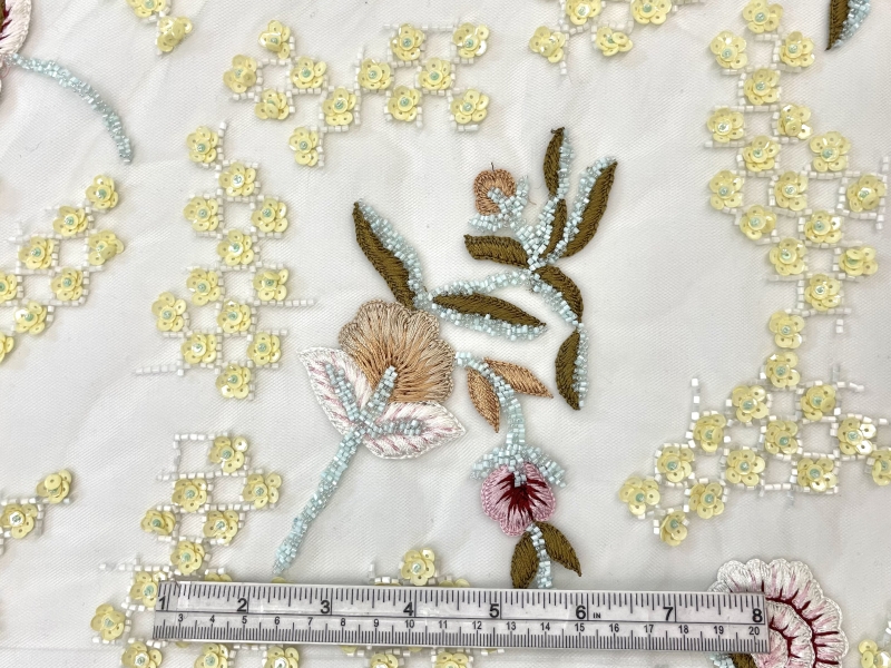 Embroidered and Beaded Illusion Fabric in Warehouse