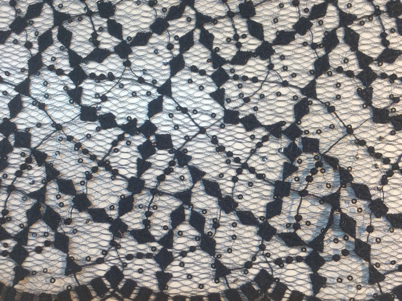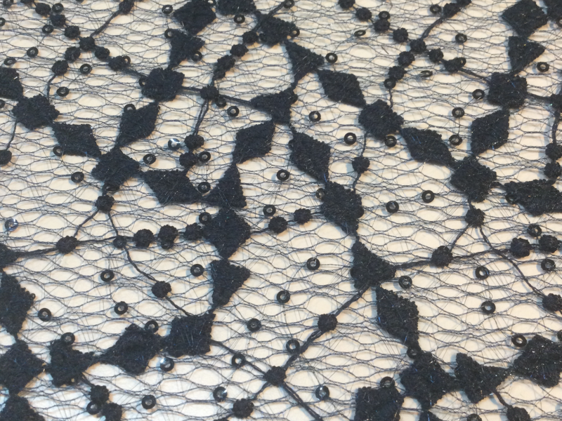 EMBROIDERED and SEQUINS<br>TULLE w/ DB SCALLOPS<br>in NAVY