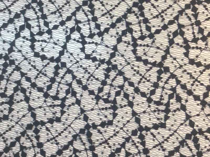 Embroidered and Sequins Tulle w/ Double Scallops in Navy