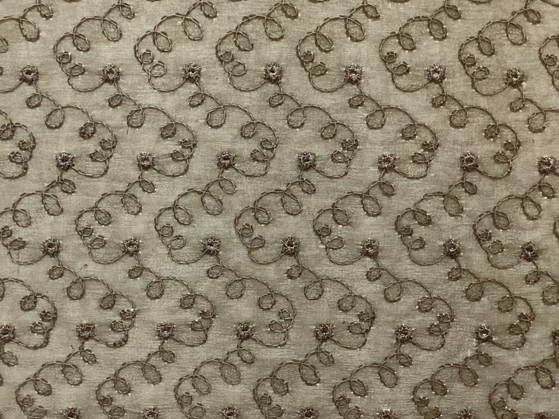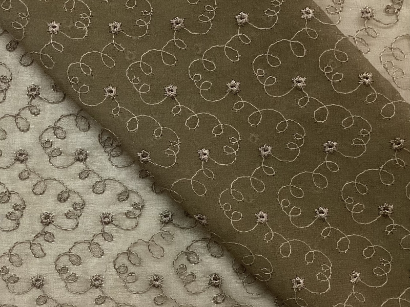 100% Silk<BR>Embroidered Chiffon<BR>in Olive