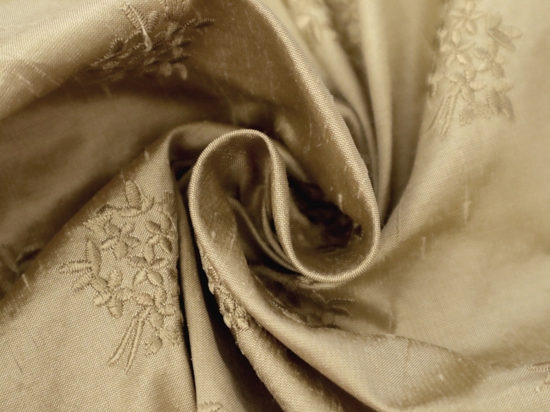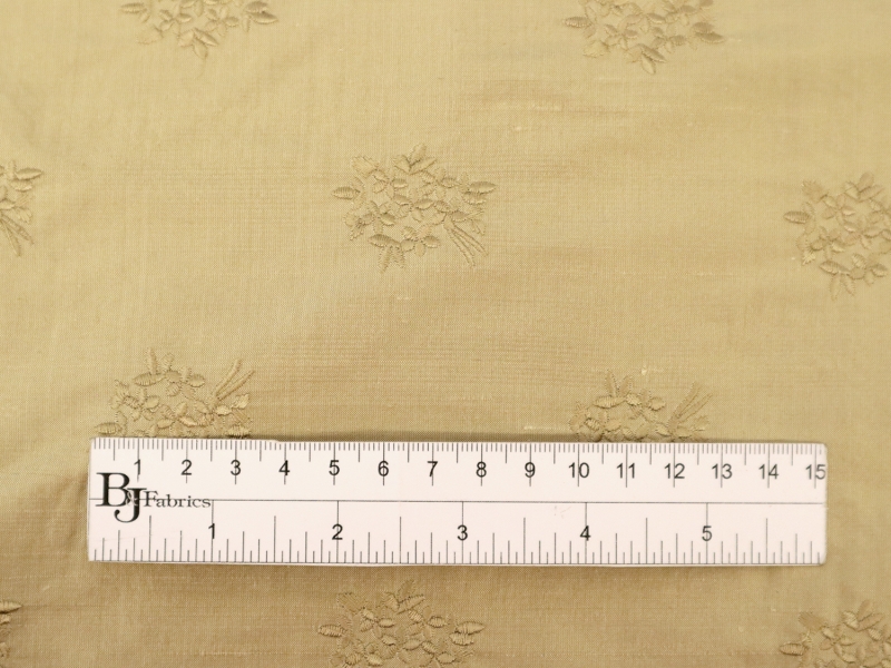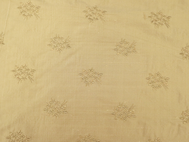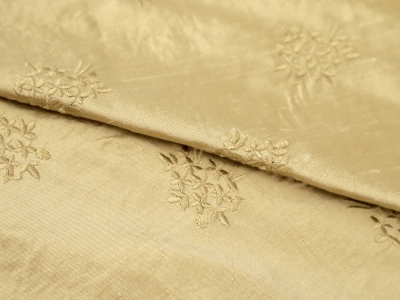 Embroidered Silk Shantung with Mini Bouquets in Light Gold