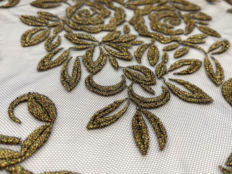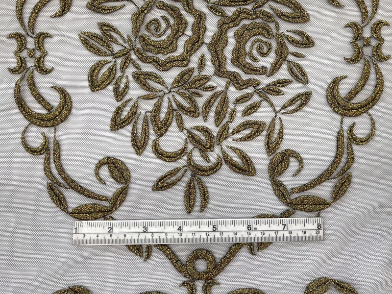 EMBROIDERED TULLE WITH GOLD FLOWER