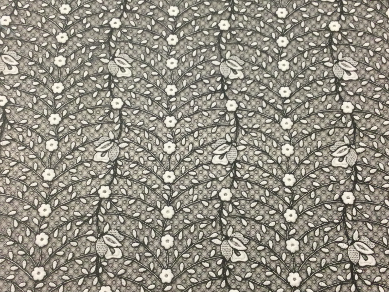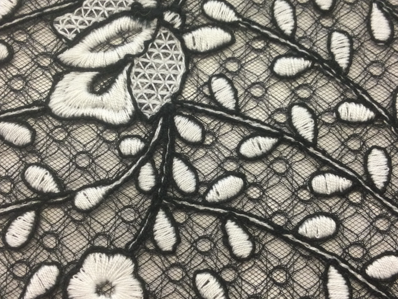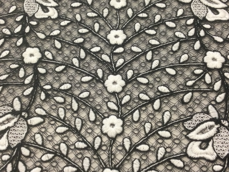 Embroidered Tulle on Nylon Mesh in Black and White