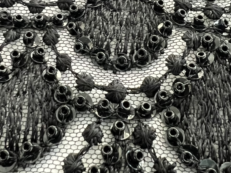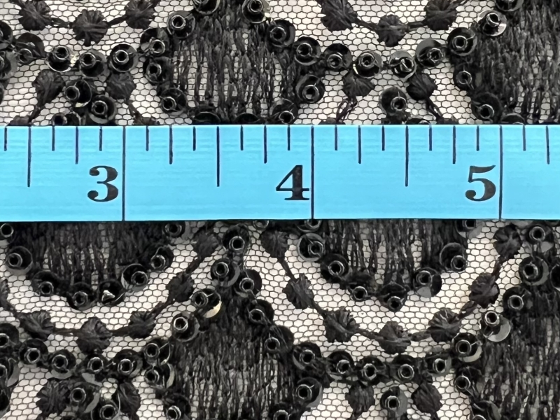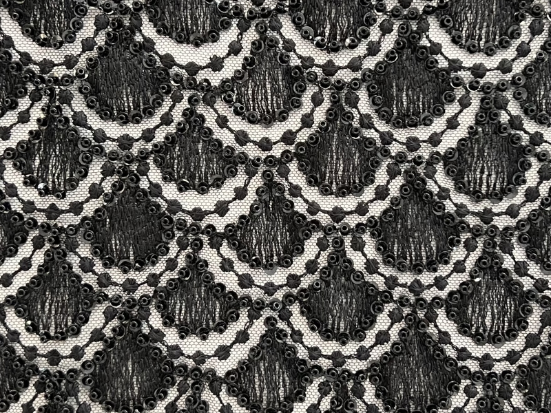 Embroidered Tulle with Sequins And Beads in Fish Scale Motif Black on Black