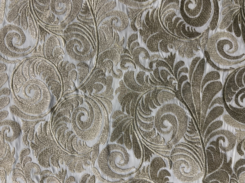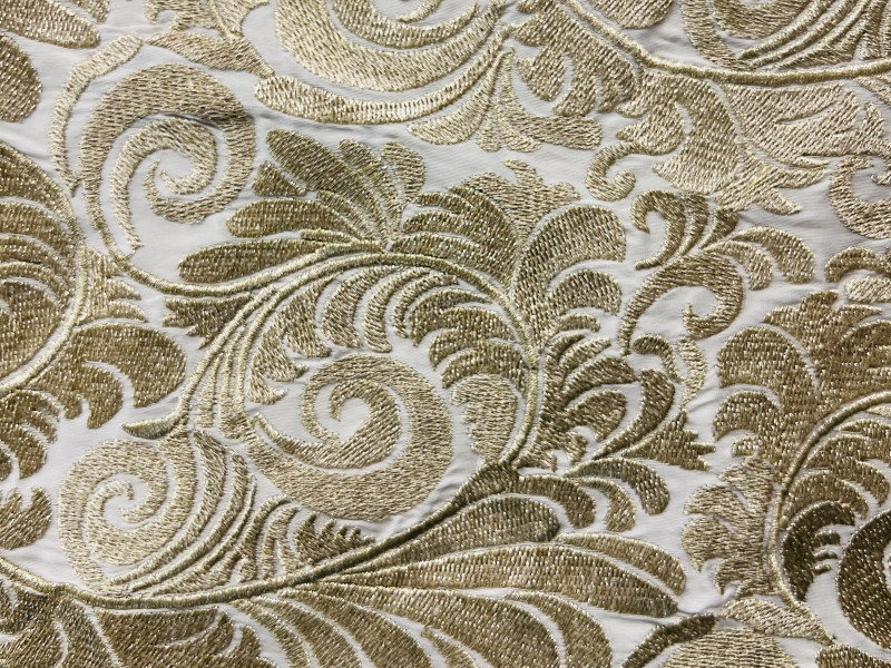 Embroidered White Taffeta in Gold