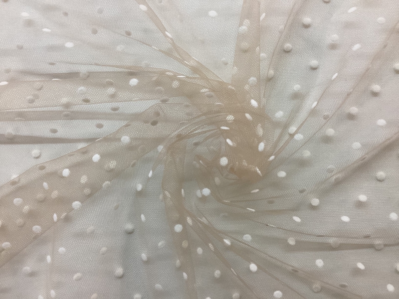 Flocked Nylon tulle in Nude with White Dots
