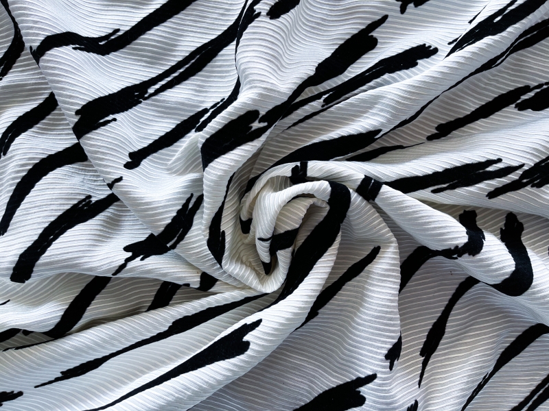 Flocked Ottoman in Black and White