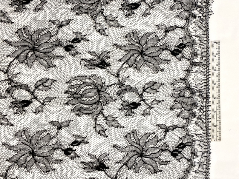 Double Scalloped Floral Chantilly Lace in Black