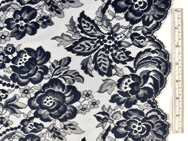 French Chantilly Lace Border 15" in Navy, CL97/1221.