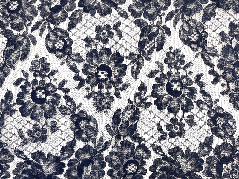 Made in France, Chantilly Lace Border in Navy, CL82/1221.