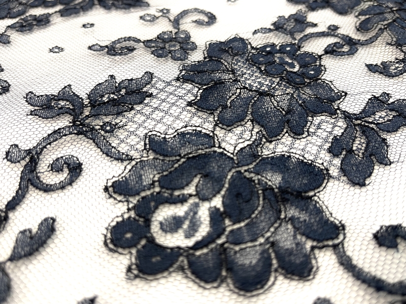French Chantilly Lace in Navy, CL65/1221.