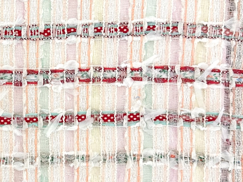 French Cotton Blend Novelty Tweed in White Aqua Watermelon