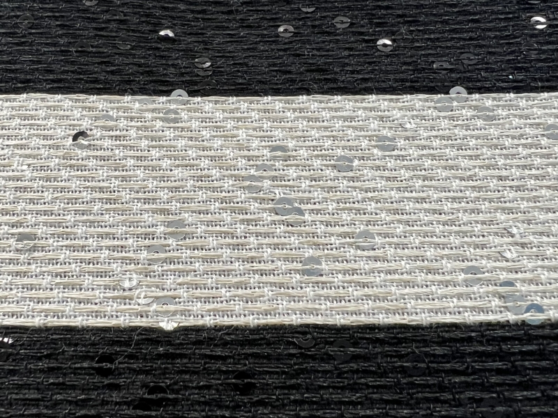 French Cotton & Nylon Sequin Raffia Stripe