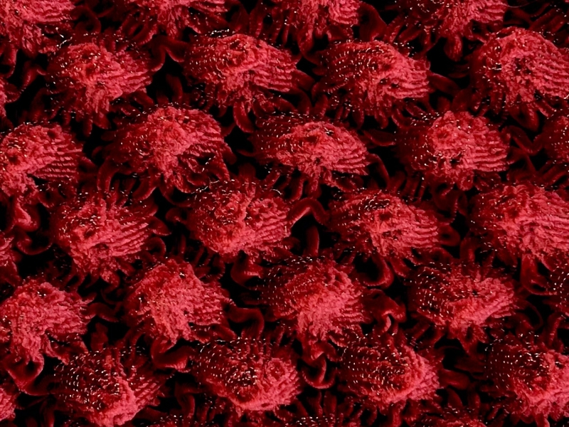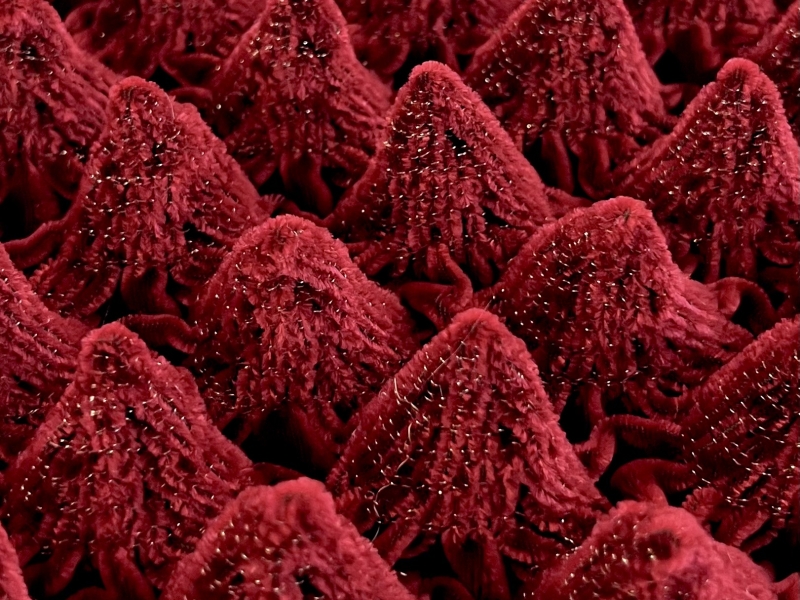 French Novelty Dimensional Cone Shaped Iridescent Velvet in Rouge Red Green