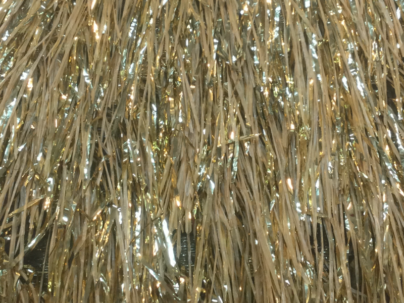 Gold & Beige Mylar and Raffia Eyelash on Black Silk Organza