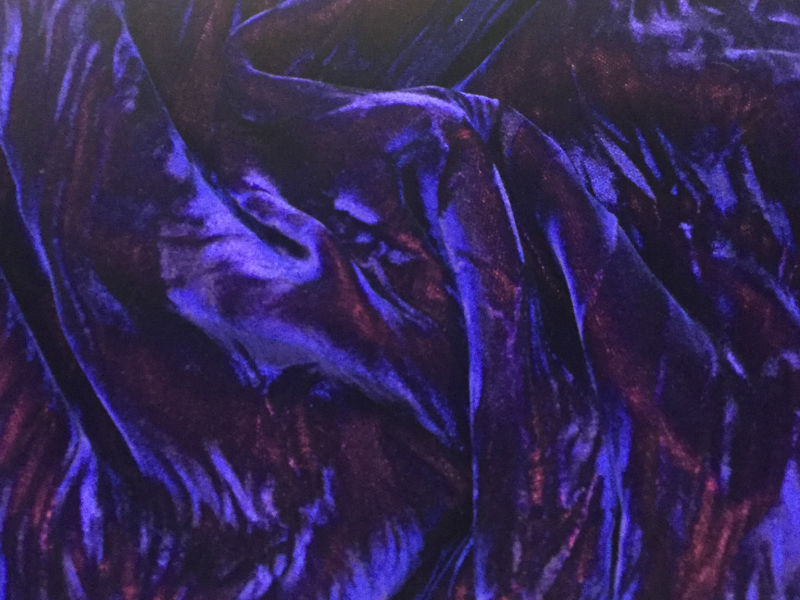 IRIDESCENT<br>CRUSHED<br>RAYON VELVET<br>in BLUE/RED