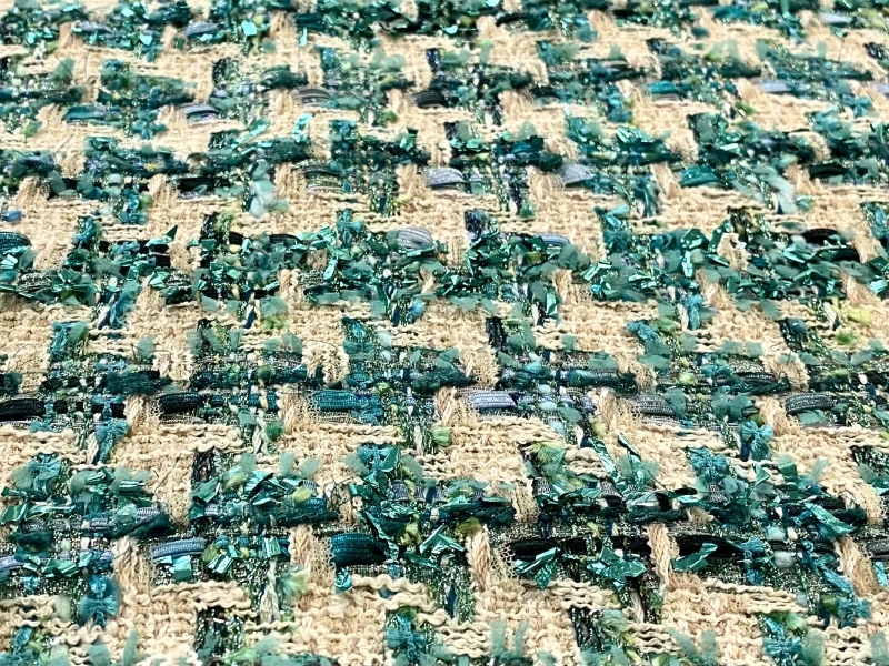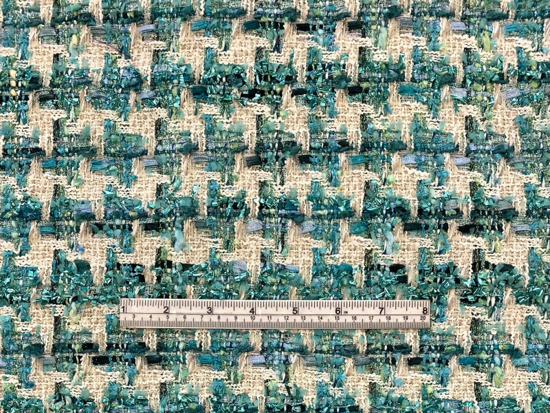 Italian Couture Cotton Blend Metallic Tweed in Turquoise