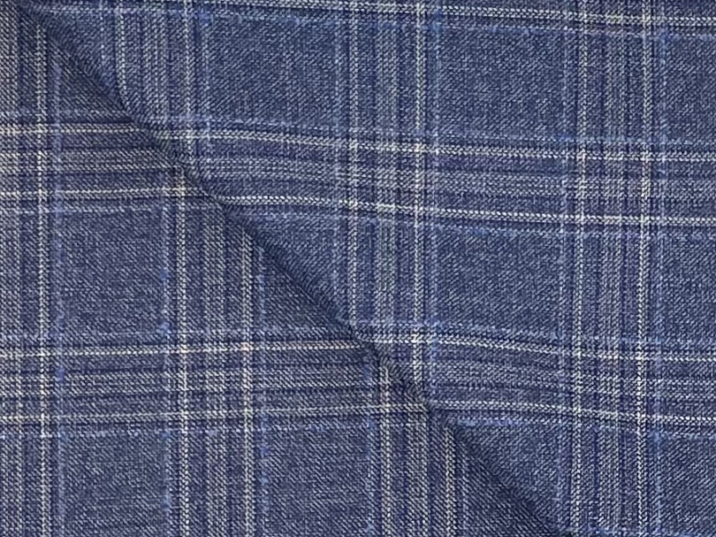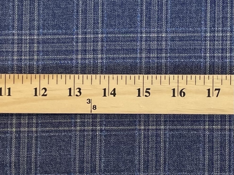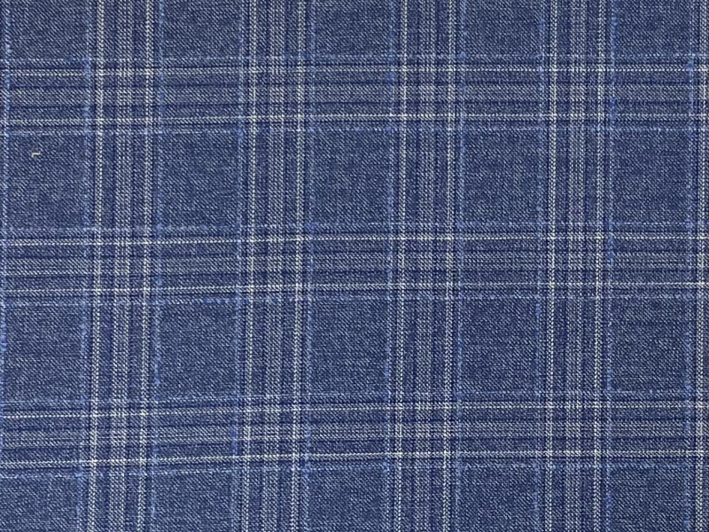 Italian Guabello Wool Super 120's Plaid in Denim Blue