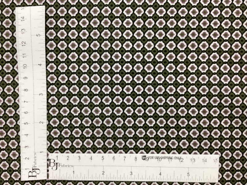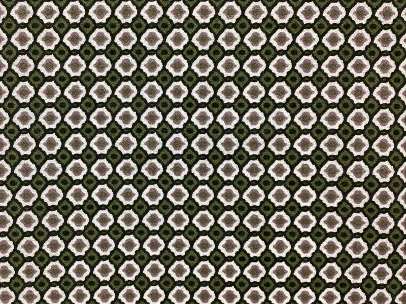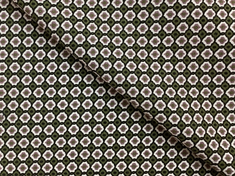 Italian Printed Viscose Challis Crepe Geometric Pattern In Olive Green Ground