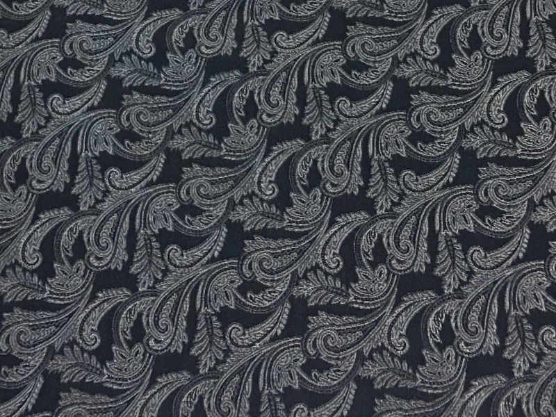 Oak Leaf Paisley Silk Tie Brocade in Navy and Grey
