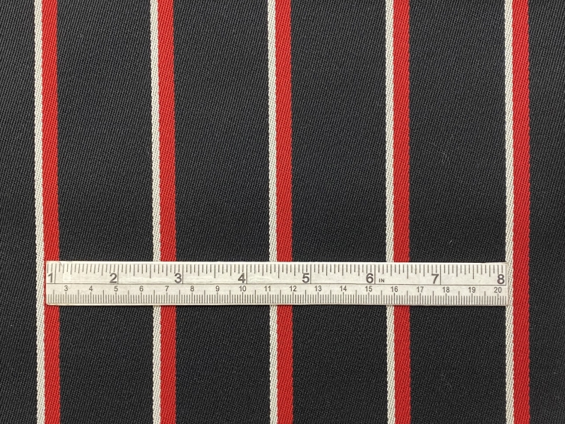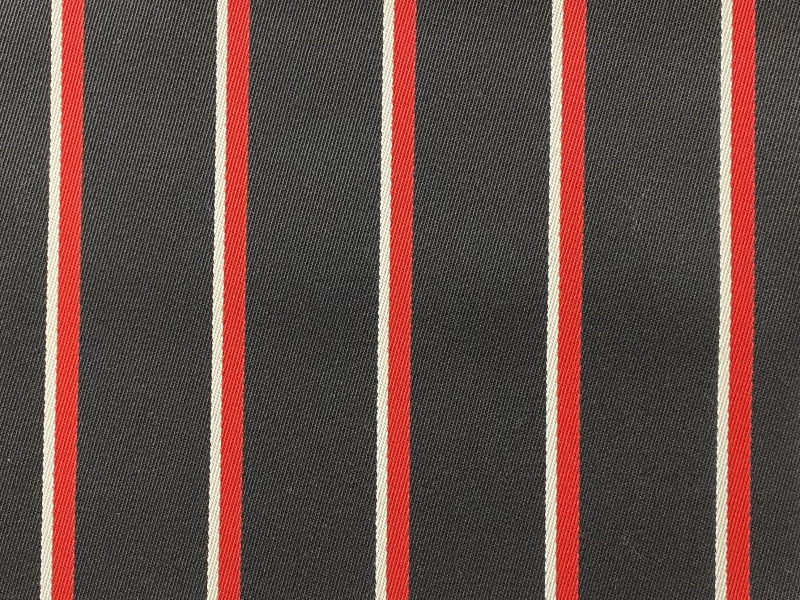100% Wool Twill in Black with Red and White Stripes