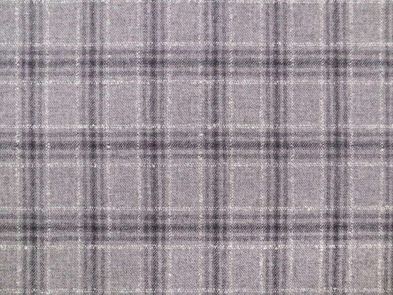 Light to medium weight suiting fabric with an ultra soft hand, and a classic plaid pattern in shades of grey.