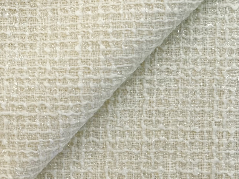 MADE IN ITALY<BR>85% WOOL 15% NYLON<BR>LUREX TWEED IN BIANCO<BR>12.98 OZ / 440 G