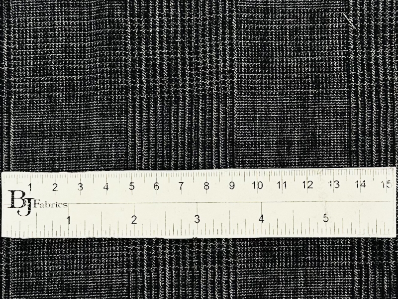 Italian Wool Poly Lycra Plaid Suiting in Black Navy