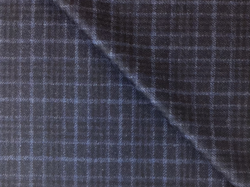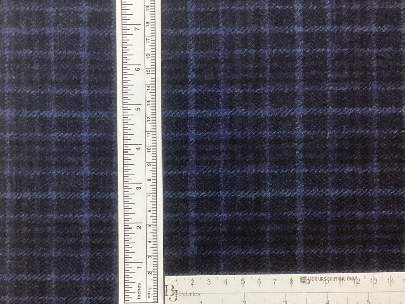 Italian Wool Super 130's Plaid in Navy Blue & Black