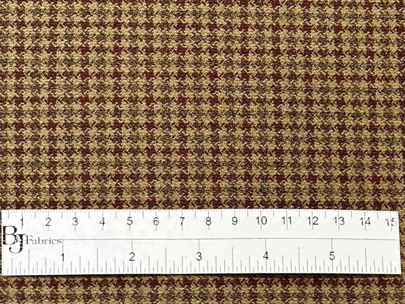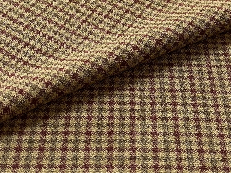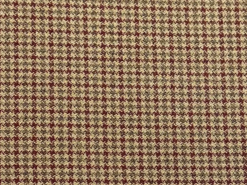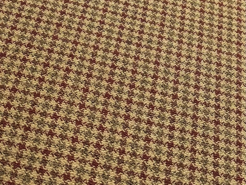 Japanese Polyester Dyed Twill Houndstooth in Mocha and Burgundy