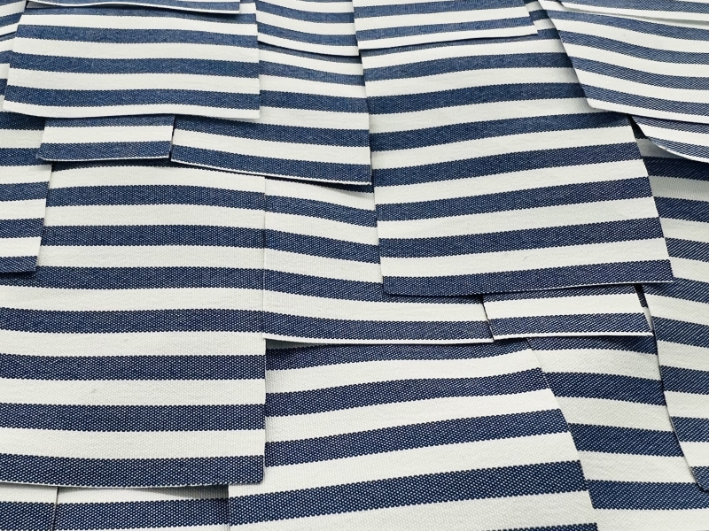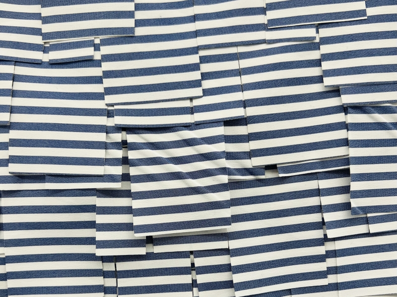 Laser Cut Polyester Shirting in Blue & White stripe