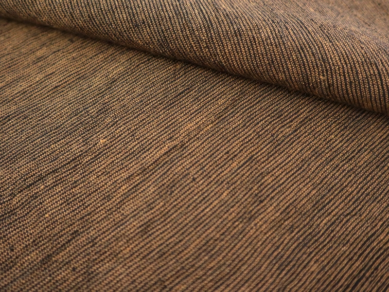 Linen Crinkled Gauze With Stripes in Brass & Black