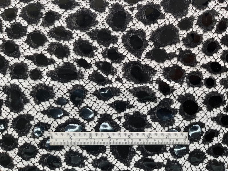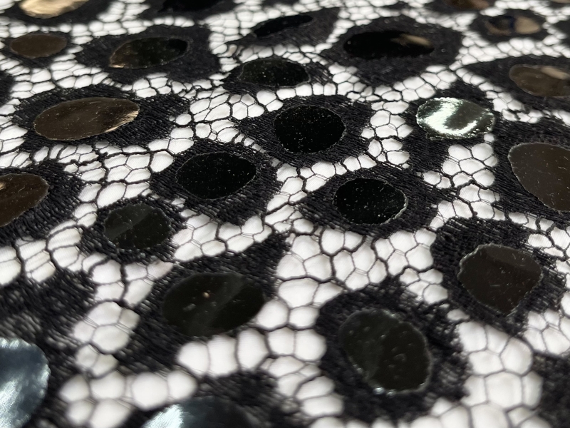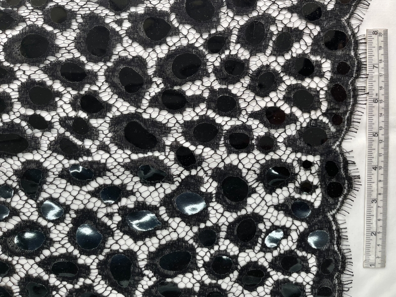 Double Scalloped Black Chantilly with Rubber Mylar in Leopard Pattern